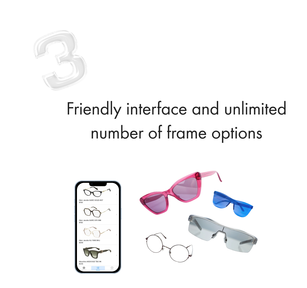 You will be able to offer clients with poor vision a unique technology - now they do not need to take off their old glasses during online fitting! They will be able to try on new frames without taking off their old pair.